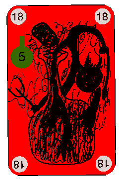 Der FlaschenteufelEr wird immer möglichst knapp unter seinem letzten Kaufpreis weiterverkauft: Spielt jemand eine Karte aus, dessen Zahlenwert niedriger ist, als der Preis des Flaschenteufels, so wechselt der Flaschenteufel automatisch seinen Besitzer, nachdem der Stich zu Ende gespielt ist.Hat dabei nur ein Spieler eine Karte gespielt, deren Zahlenwert niedriger ist als der Preis des Flaschenteufels, so erhält dieser Spieler Stich und Flaschenteufel. Haben mehrere Spieler eine Karte gespielt, deren Zahlenwerte niedriger sind als der Preis des Flaschenteufels, so erhält derjenige Spieler Stich und Flaschenteufel, der von ihnen die höchste Karte gespielt hat. Die Karte, mittels derer der Spieler Stich und Flaschenteufel erhalten hat, wird offen unter den Flaschenteufel gelegt. Sie gibt den neuen Preis des Flaschenteufels an. Die Karte mit dem bisherigen Preis kommt zu den Stichen des Spielers, der bisher Besitzer des Flaschenteufels war. (Es ist möglich, daß alter und neuer Besitzer des Flaschenteufels identisch sind). Zu Beginn des Spieles hat der Flaschenteufel noch keinen Besitzer. Sein Anfangspreis beträgt 19. Ein Beispiel:Zahlenwert des Flaschenteufels = 19.Folgende Karten wurden gespielt: Spieler A: 24 Spieler B: 15 Spieler C: 17 Spieler D: 32. Spieler A und D haben also einen höheren, Spieler B und C einen niedrigeren Wert als 19 gespielt. Von diesen beiden erhält Spieler C Stich und Flaschenteufel, weil die 17 eine geringere Differenz zum bisherigen Preis von 19 aufweist als die 15 von Spieler B. Der neue Preis für den Flaschenteufel beträgt jetzt 17. Die Karte 17 liegt offen unter dem Flaschenteufel. Den nächsten Stich eröffnet immer der Spieler, der den jeweils letzten Stich bekommen hat (im obigen Beispiel also Spieler C).